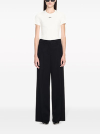 wool straight-leg trousers Off-White presents its take on classic tailoring with these wool trousers. Cut to a straight-leg silhouette, they're subtly adorned with the brand's logo embroidered in tonal threads. Highlights - Black - Wool - Tailored cut - Embroidered logo - High-waisted - Belt loops - Concealed front fastening - Straight leg Made in Italy Composition Lining: Cotton 100% Outer: Virgin Wool 100% Washing instructions Read Manufacturer Guidelines