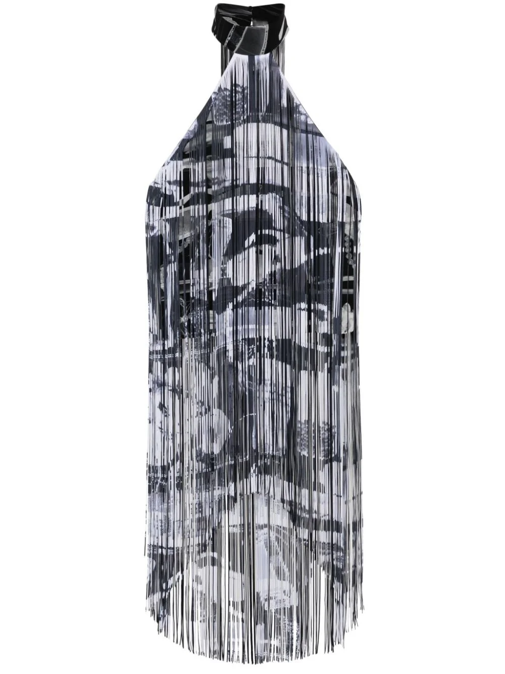 X-ray fringed top Made in Italy, this halterneck top by Off-White is made unique with dramatic fringing detailed with an x-ray print. Highlights - Black/white - Stretch-design - All-over graphic print - All-over fringe detailing - Halterneck - Sleeveless - Cropped - Straight hem - Full lining Made in Italy Composition Outer: Polyamide 100%, Viscose 95%, Elastane 5% Washing instructions Hand Wash