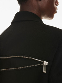 zip-detail virgin wool coat This coat is emblematic of Off-White's penchant for imbuing timeless silhouettes with unexpected details. Spun from plush virgin wool in Italy, the double-breasted silhouette is enlivened by zip detailing outlining the flap pockets and decorating the rear. Highlights - Black - Virgin wool - Decorative zip detailing - Peak lapels - Chest welt pocket - Long sleeves - Double-breasted button fastening - Two front flap pockets - Embroidered logo - Straight hem Made in Italy Composition Virgin Wool 100% Lining: Cupro 100%, Cotton 100%, Viscose 100% SIZE & FIT FittingInformation Designed to be unstructured, offering a loose fit throughout