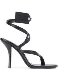 zip-tie tag strappy sandals You like limited edition pieces, and like them, you can't remove the tags from Off-White accessories, that's just the way they're designed. Case in point: these strappy stiletto sandals, finished with the signature zip-tie tag to the ankle. Highlights - Black - Leather - Signature zip-tie logo embossed patch - Crossover strap at the toe - Tie-fastening ankle strap - High stiletto heel Made in Italy Composition Outer: Leather 100% Lining: Leather 100% Sole: Leather 100% SIZE & FIT Measurement CIRCUMFERENCE 9.44 in(24 cm) HEEL 4.33 in(11 cm) HEIGHT 5.11 in(13 cm) Sole height 0.39 in(1 cm)