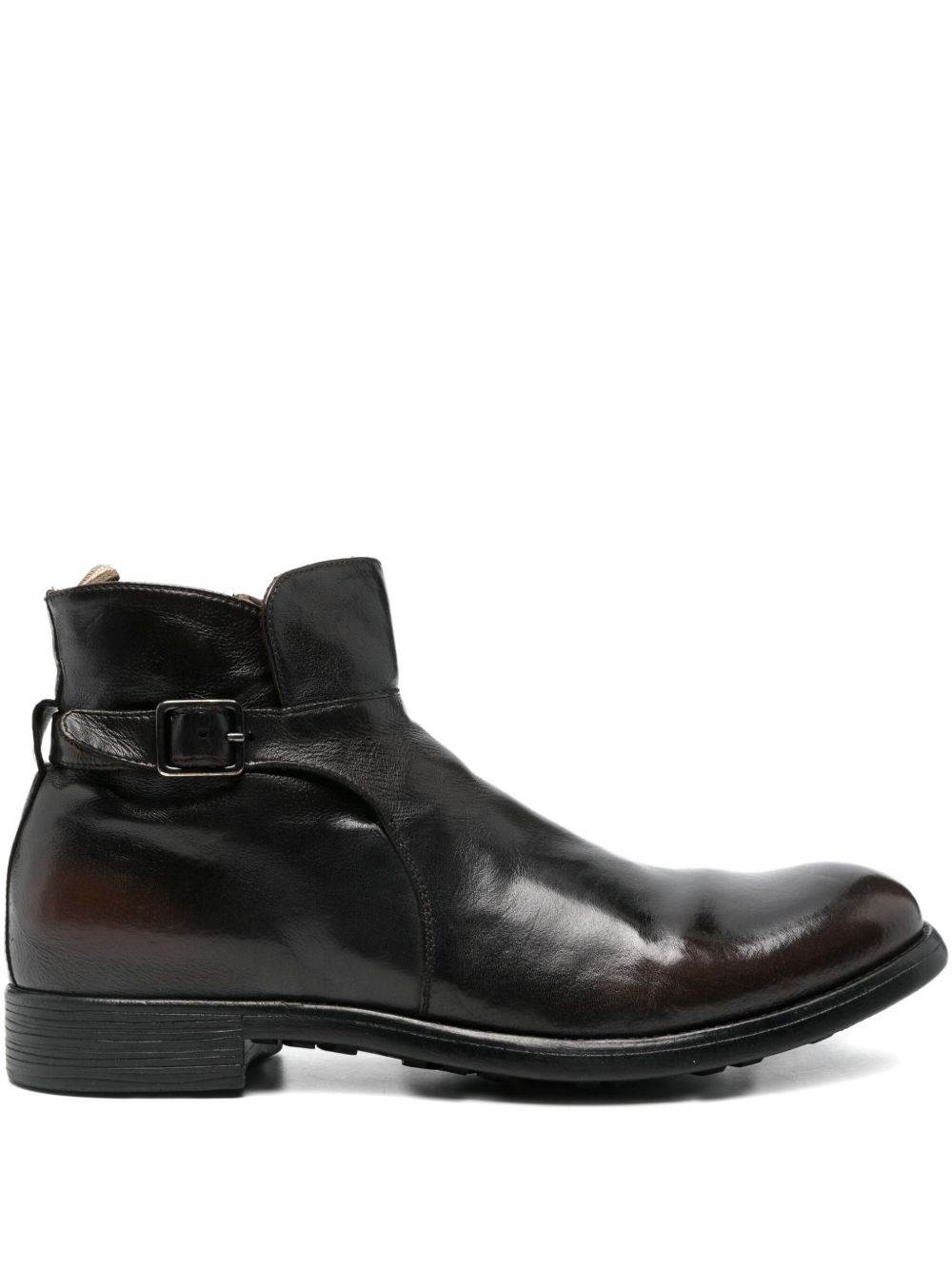 buckle-detail biker boots Highlights - Dark brown - Side zip fastening - Buckle strap - Almond toe - Flat leather sole Imported Composition Sole: Rubber 100% Outer: Buffalo Leather 100% Lining: Leather 100%