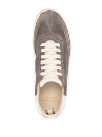 Combined suede-leather sneakers lavagna grey/tofu white calf suede contrasting branded heel counter front lace-up fastening round toe flat rubber sole Made in Italy Composition Sole: Rubber 100% Outer: Calf Suede 100% Lining: Calf Leather 100% SIZE & FIT Measurement HEEL 0.78 in(2 cm) Sole height 0.59 in(1.5 cm)