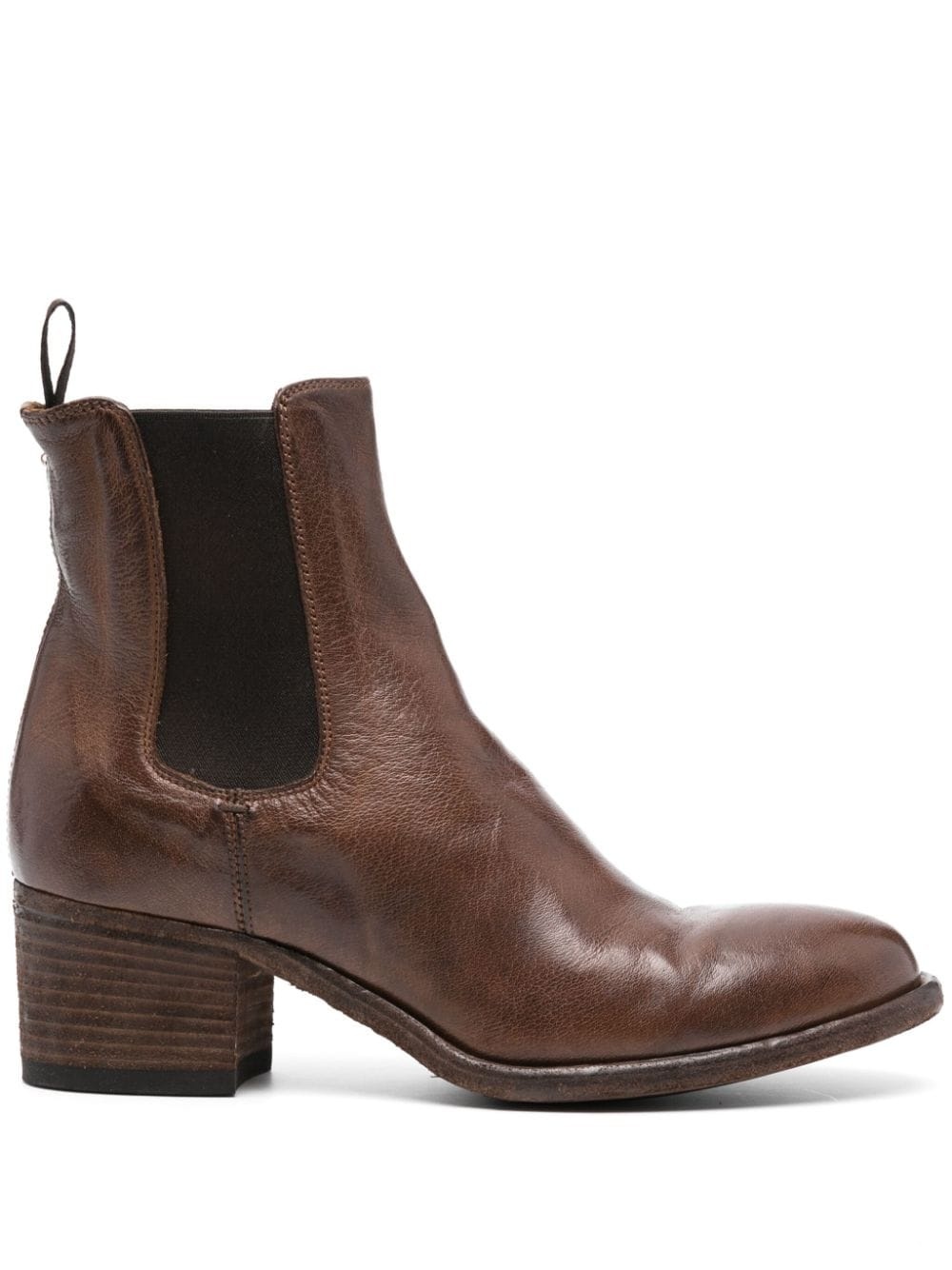 Denner 114 55mm leather boots Highlights - Tobacco brown - Calf leather - Smooth grain - Round toe - Elasticated side panels - Pull-tab at the heel - 55mm block heel - Branded leather insole - Leather sole - Rubber sole Made in Italy Composition Lining: Calf Leather 100% Sole: Calf Leather 100%, Rubber 100% Outer: Calf Leather 100% SIZE & FIT Measurement CIRCUMFERENCE 9.44 in(24 cm) HEEL 2.16 in(5.5 cm) HEIGHT 4.92 in(12.5 cm)