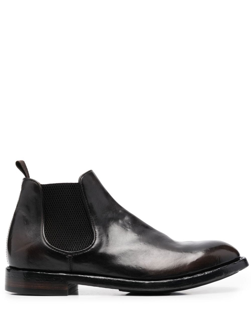 elasticated-panel leather boots dark brown leather/horse leather high-shine finish elasticated side panels almond toe pull-tab at the heel slip-on style ankle-length branded insole flat rubber sole Made in Italy Composition Outer: Horse Leather 100% Lining: Leather 100% Sole: Leather 100%, Rubber 100% SIZE & FIT Measurement HEEL 0.98 in(2.5 cm) HEIGHT 4.33 in(11 cm) Sole height 0.59 in(1.5 cm)