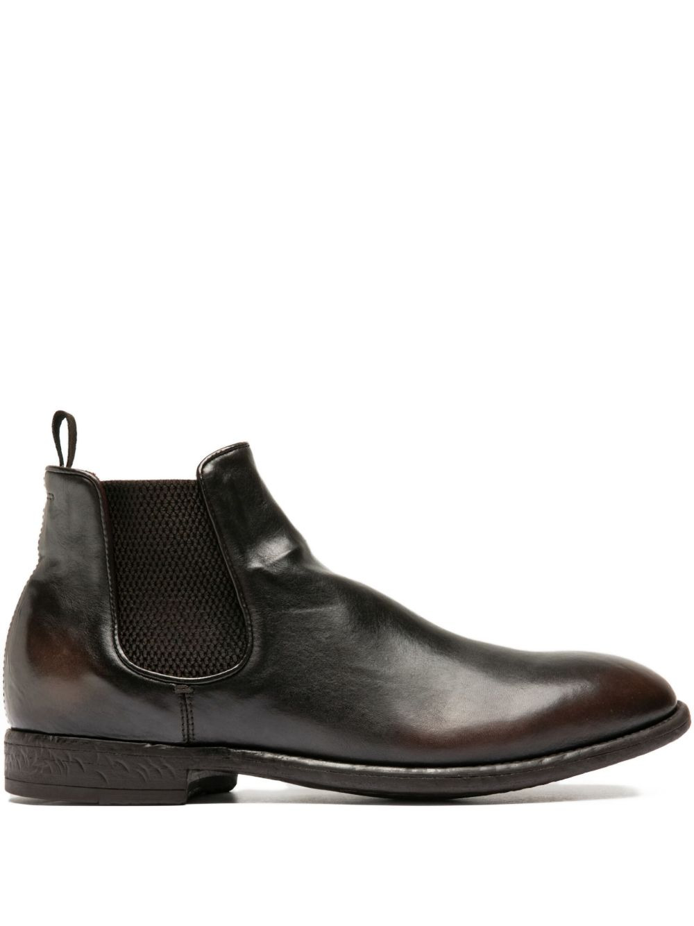 Emory leather boots Highlights - Dark brown - Leather upper - Elasticated side panels - Round toe - Flat heel - Patterned sole Made in Italy Composition Sole: Rubber 100% Outer: Leather 100% Lining: Leather 100%