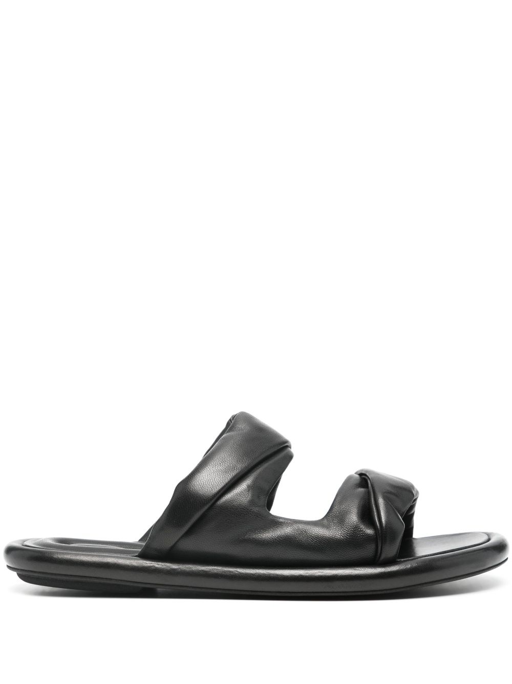 Estens 102 leather sandals Highlights - Black - Leather - Smooth grain - Padded design - Almond open toe - Double-strap design with folded detail - Branded leather insole - Flat leather sole - Slip-on style Made in Italy Composition Outer: Leather 100% Lining: Leather 100% Sole: Leather 100% SIZE & FIT Measurement HEEL 0.98 in(2.5 cm) Sole height 0.59 in(1.5 cm)