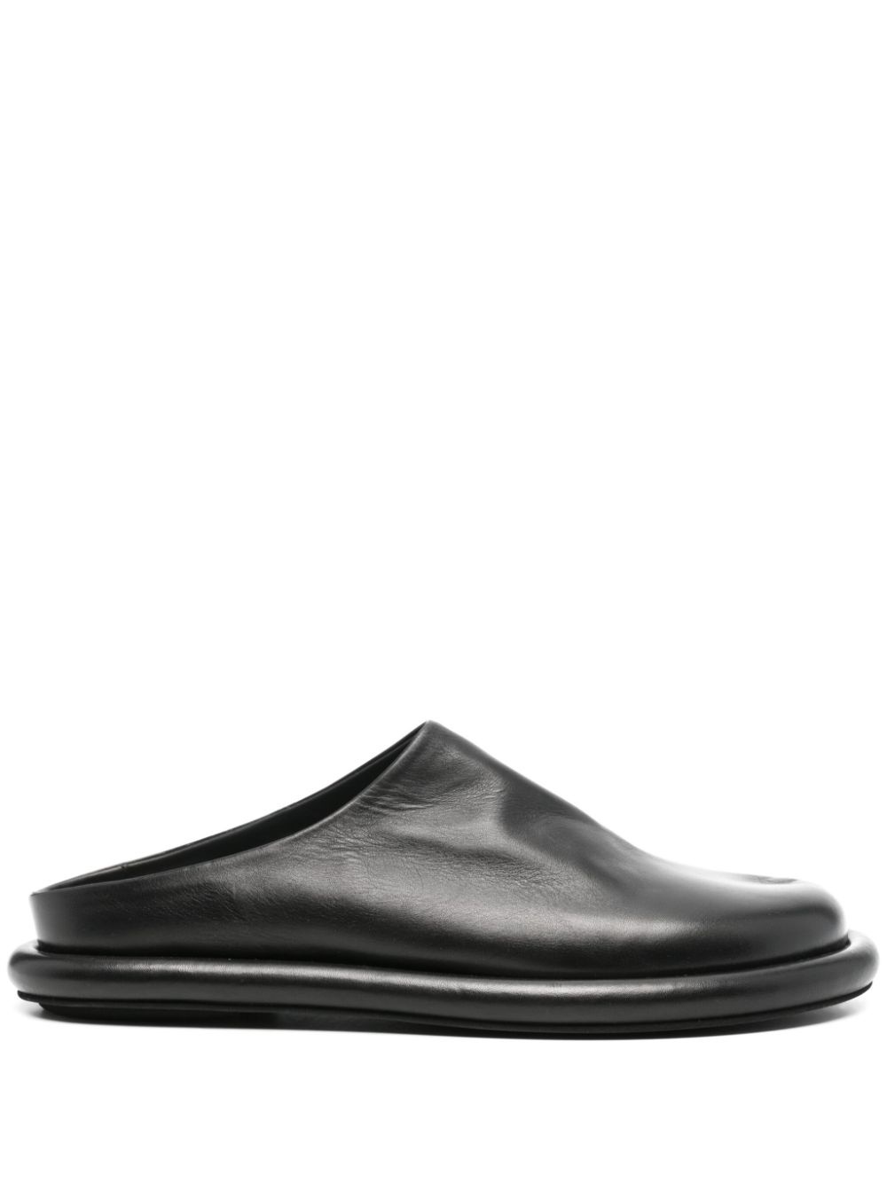 Estens 107 leather mules Highlights - Black - Calf leather - Almond toe - Branded leather insole - Flat rubber sole - Slip-on style Made in Italy Composition Leather 100% SIZE & FIT Measurement HEEL 0.98 in(2.5 cm) Sole height 0.59 in(1.5 cm)