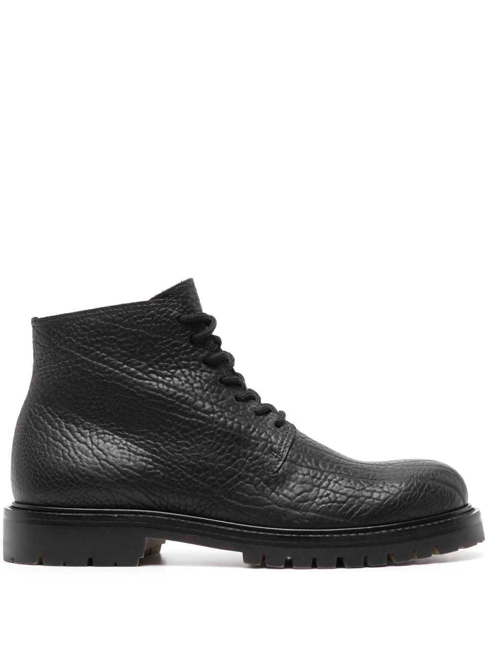 grained leather ankle boots Highlights - Black - Buffalo leather - Grained texture - Ankle-length - Front lace-up fastening - Round toe - Branded leather insole - Rubber sole Made in Italy Composition Lining: Calf Leather 100% Outer: Buffalo Leather 100% Sole: Rubber 100% SIZE & FIT Measurement HEEL 1.37 in(3.5 cm) HEIGHT 4.72 in(12 cm) Sole height 0.98 in(2.5 cm)