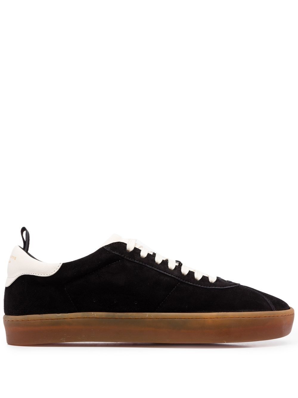 Kameleon low-top sneakers black/ivory white/tan brown calf suede/calf leather colour-block design logo-embossed tongue round toe front lace-up fastening branded insole flat rubber sole Made in Italy Composition Sole: Rubber 100% Outer: Calf Suede 100%, Calf Leather 100% Lining: Calf Leather 100% SIZE & FIT Measurement HEEL 1.18 in(3 cm) Sole height 0.98 in(2.5 cm)
