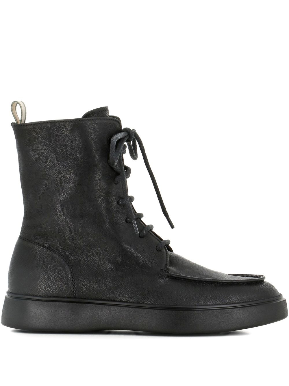 lace-up leather combat boots Highlights - Black - Leather upper - Lace-up fastening - Round toe - Flat sole - Side-zip fastening Made in Italy Composition Outer: Leather 100% Sole: Rubber 100% Lining: Calf Leather 100%