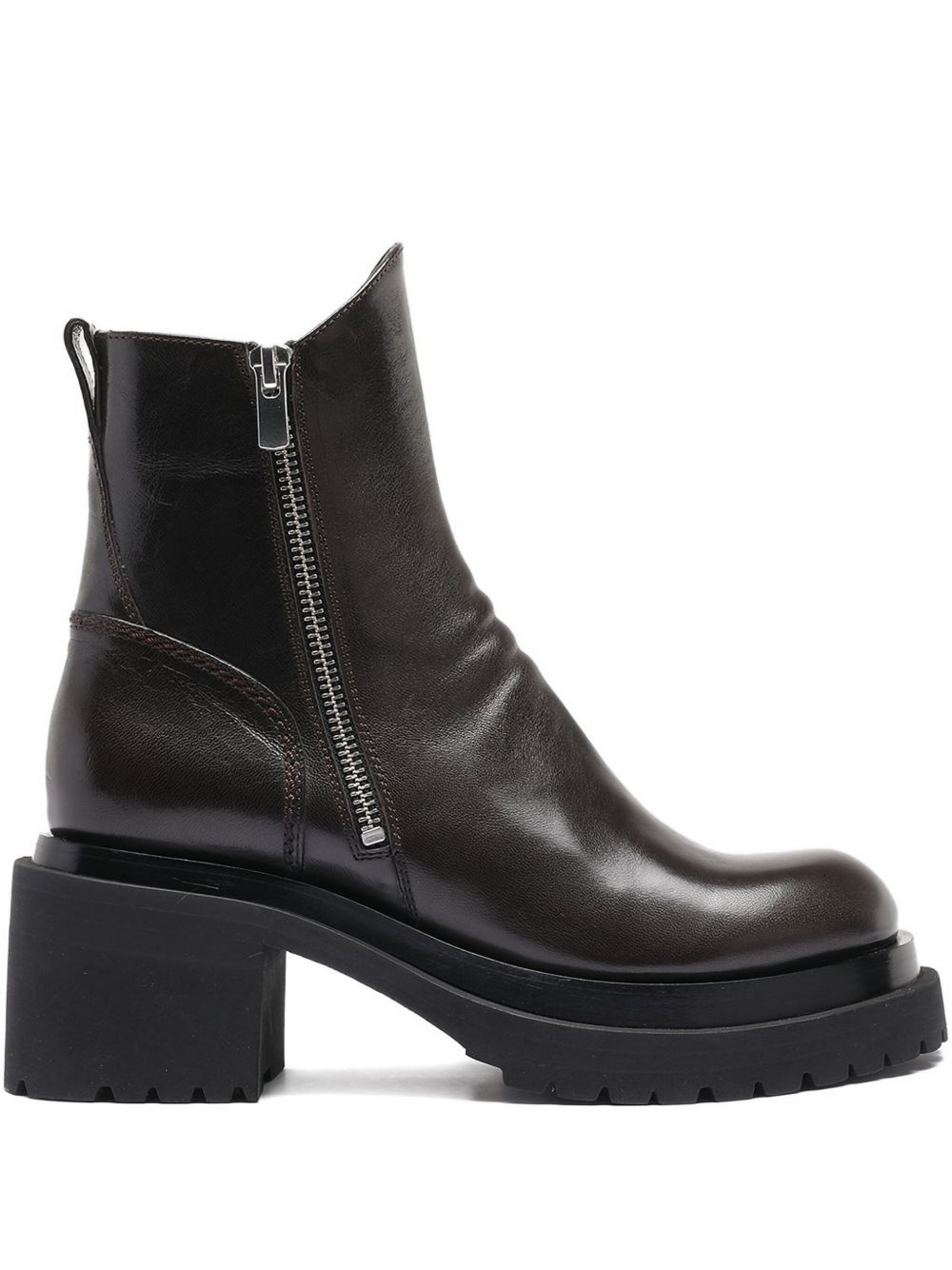 leather boots Highlights - Cedar brown - Side zip fastening - Mid block heel - Branded insole - Round toe Made in Italy Composition Sole: Rubber 100% Lining: Calf Leather 100% Outer: Buffalo Leather 100%