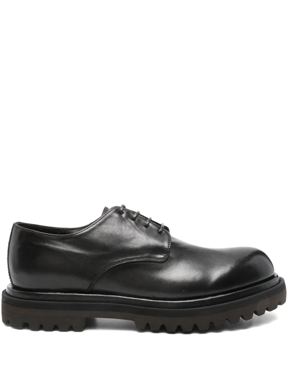 leather derby shoes Highlights - Black - Front lace-up fastening - Round toe - Lug sole - Low top - Tonal stitching Imported Composition Outer: Leather 100% Sole: Rubber 100% Lining: Fabric 100%