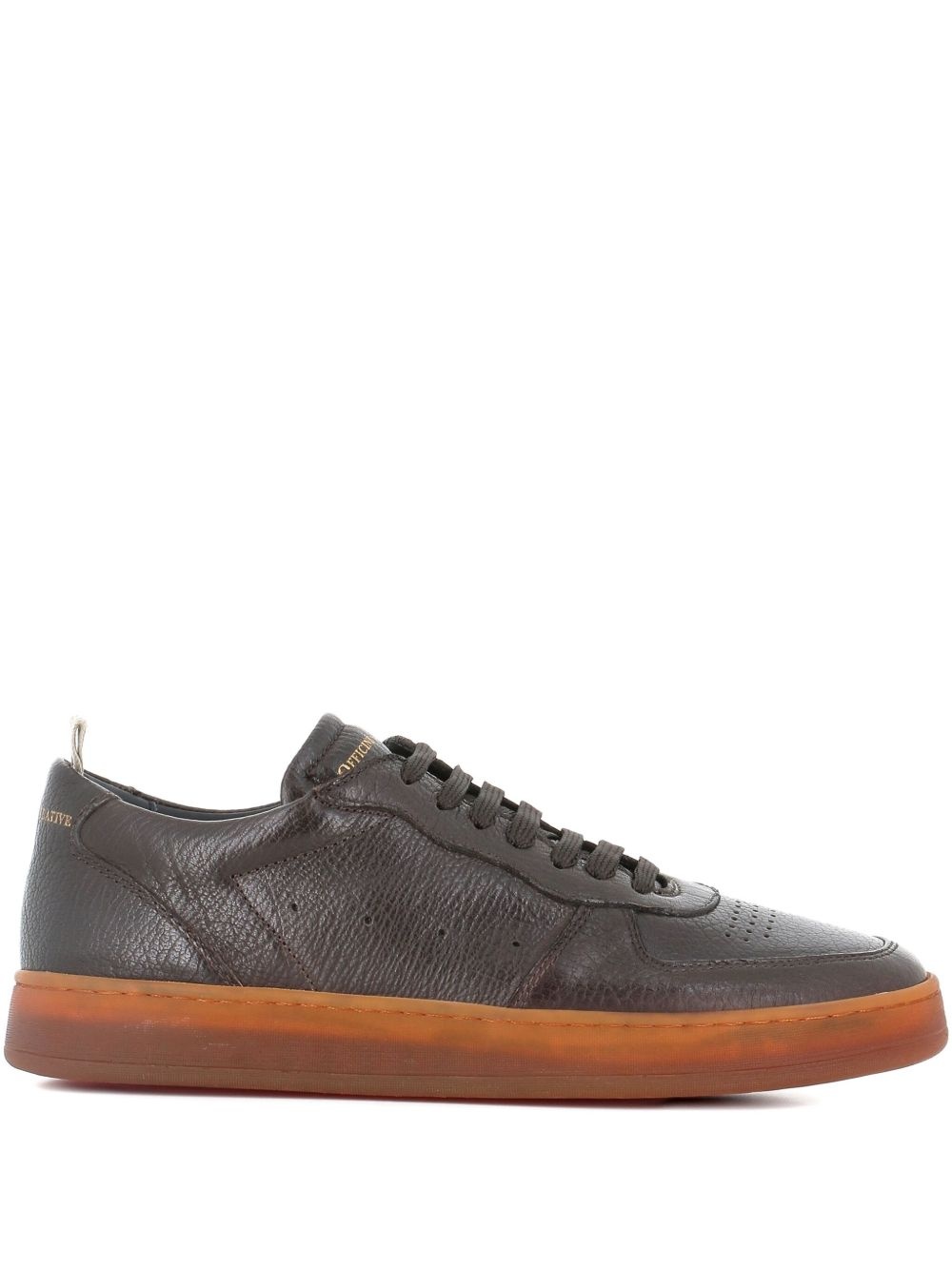 leather low-top sneakers Highlights - Dark brown - Perforated detailing - Lace-up front - Contrasting rubber sole - Logo print Made in Italy Composition Outer: Leather 100% Sole: Rubber 100% Lining: Leather 100%