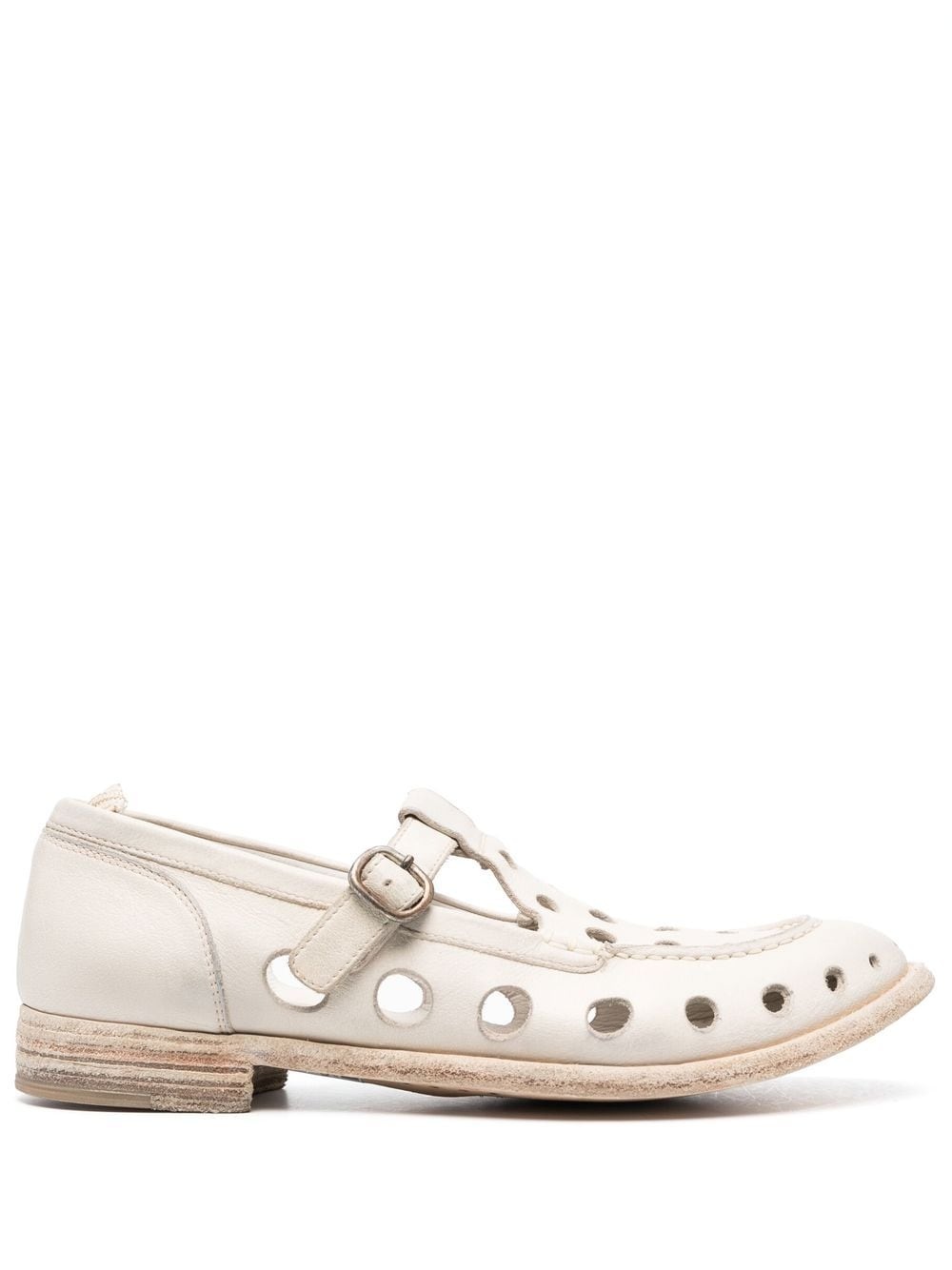 Lexi leather loafers white calf leather/buffalo leather punched holes almond toe T-bar strap buckle fastening branded leather insole flat rubber sole Made in Italy Composition Outer: Buffalo Leather 100% Sole: Calf Leather 100% Lining: Calf Leather 100% SIZE & FIT Measurement HEEL 0.98 in(2.5 cm) Sole height 0.39 in(1 cm)