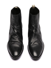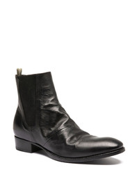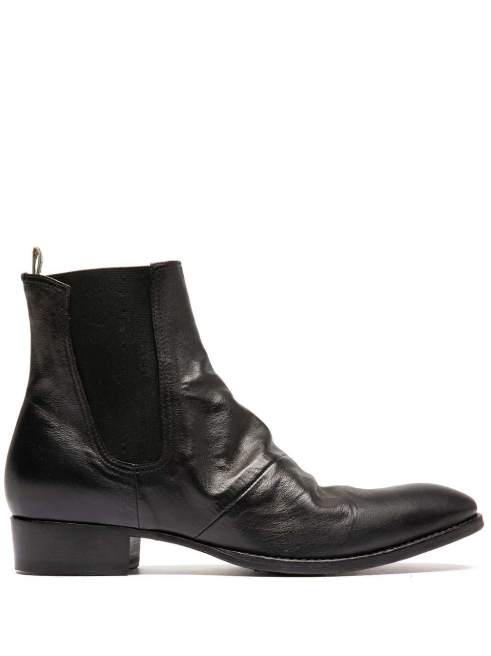 Sean boots Highlights - Black - Calf leather - Grained texture - Slip-on style - Low stacked heel - Pull-tab at the heel - Elasticated side panels - Almond toe - Branded leather insole - Leather sole - Rubber outsole Made in Italy Composition Lining: Calf Leather 100% Sole: Rubber 100%, Calf Leather 100% Outer: Buffalo Leather 100%