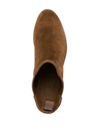 Seline 029 Chelsea boots Highlights - Camel brown - Calf suede - Panelled design - Tonal stitching - Almond toe - Ankle-length - Elasticated side panels - Pull-tab at the heel - Branded insole - Low block heel - Leather sole Made in Italy Composition Suede 100% SIZE & FIT Measurement HEEL 1.37 in(3.5 cm) HEIGHT 5.11 in(13 cm)