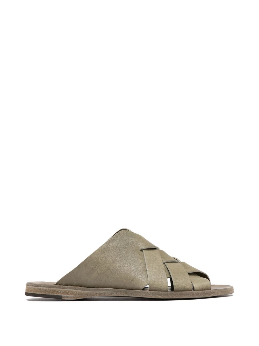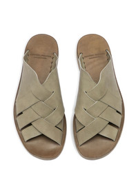 woven leather sandals Highlights - Olive green - Leather upper - Open toe - Flat sole - Slip-on style Made in Italy Composition Lining: Leather 100% Outer: Leather 100% Sole: Calf Leather 100%