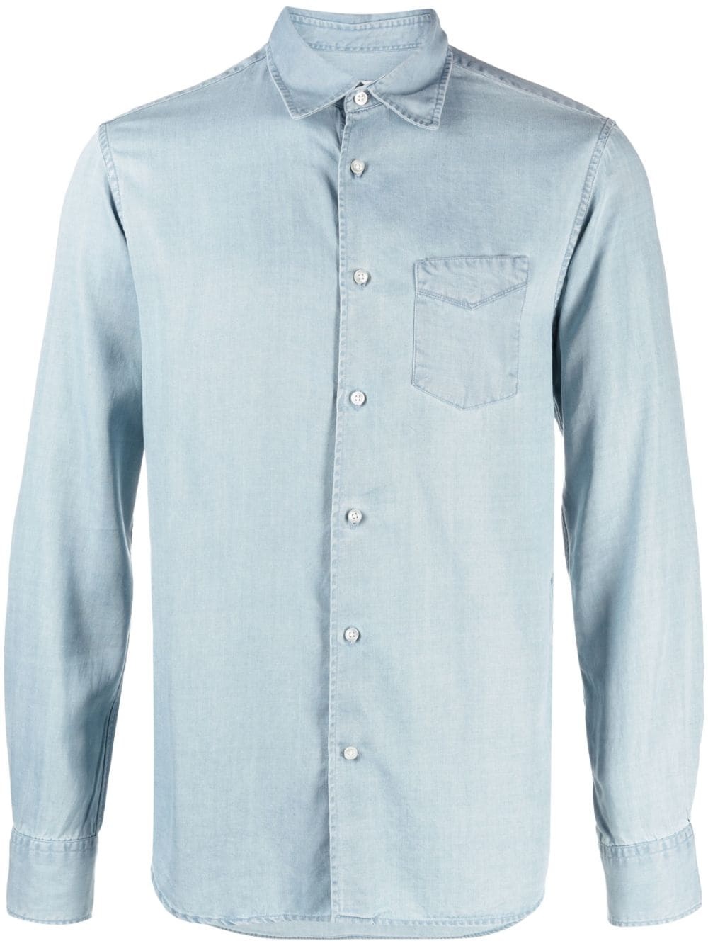 button-up lyocell shirt Highlights - Light blue - Lyocell - Pointed flat collar - Front button fastening - Chest patch pocket - Long sleeves - Buttoned cuffs - Straight hem Imported Composition Lyocell 100% SIZE & FIT Model measurements Height 6 ft 2 in(1.87 m) Bust/Chest 36.41 in(92.5 cm) Hips 37 in(94 cm) Waist 29.52 in(75 cm) Measurement CHEST 48.81 in(124 cm) SLEEVE LENGTH 35.82 in(91 cm) Shoulder Width 19.68 in(50 cm) FittingInformation Designed for a relaxed fit, this piece allows for comfort and movement when worn Made from a midweight non-stretch fabric This piece fits true to size – take your usual size
