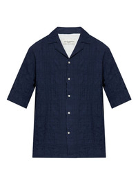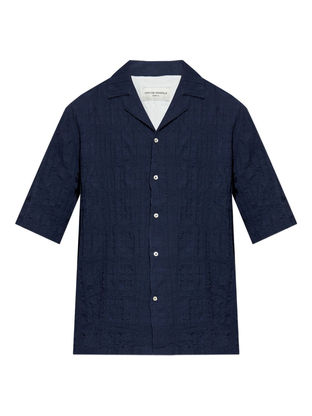 cotton shirt Highlights - Navy blue - Front button fastening - Short sleeves - Straight hem - Textured finish Imported Composition Cotton 100%