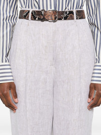 cuffed trousers Highlights - Light beige - Pressed crease - Cuffed hems - High-rise waist - Button fly Imported Composition Lining: Cotton 100% Outer: Linen/Flax 100% SIZE & FIT Model measurements Height 5 ft 11 in(1.8 m) Bust/Chest 31.49 in(80 cm) Hips 36.61 in(93 cm) Waist 24.4 in(62 cm) Washing instructions Machine Wash