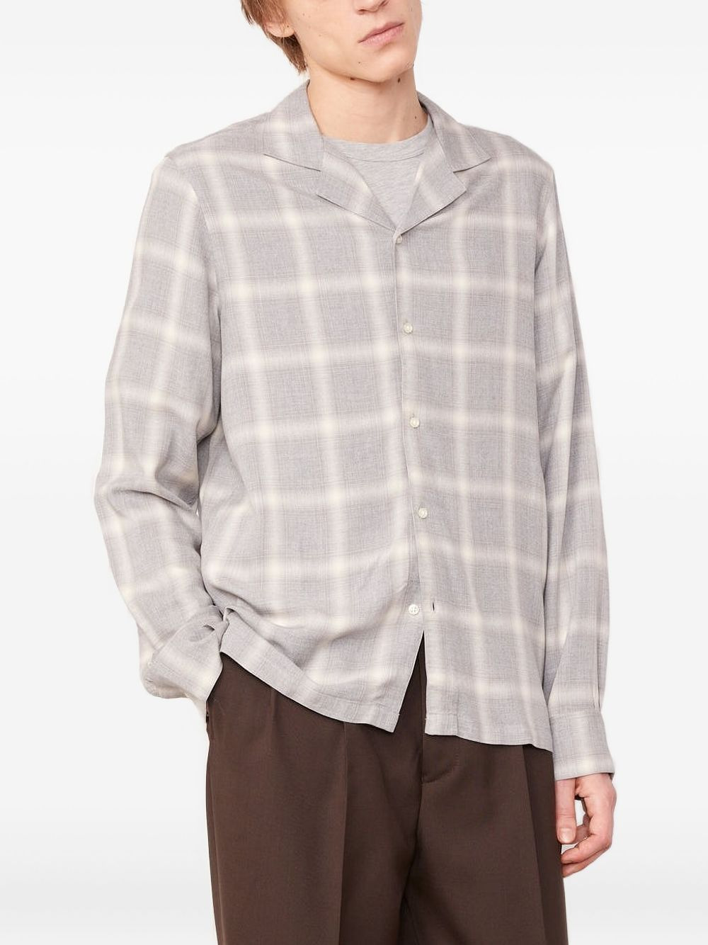 Eren camp-collar checked shirt Highlights - Light grey - Checked pattern - Revere collar - Long sleeves - Button fastening - Straight hem Imported Composition Ramie 100% Washing instructions Machine Wash