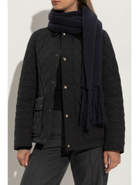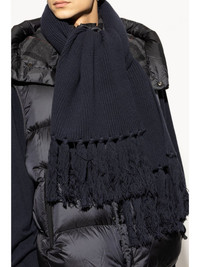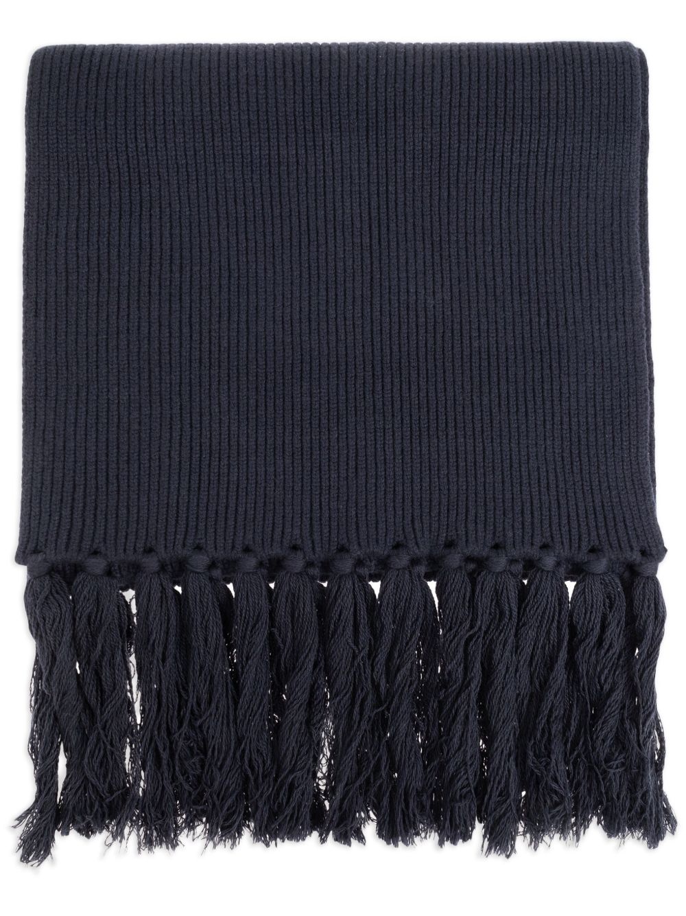 fringed wool scarf Highlights - Navy blue - Virgin wool - Knitted construction - Ribbed knit - Fringed edge - Wraparound style Imported Composition Virgin Wool 100% SIZE & FIT Measurement LENGTH 59.05 in(150 cm) WIDTH 15.35 in(39 cm)