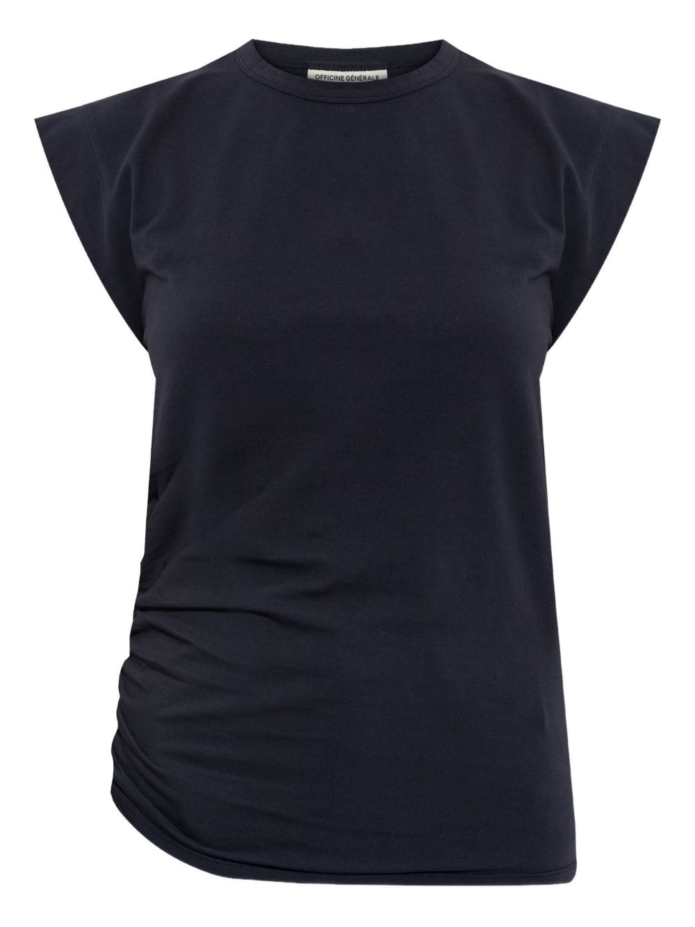 gathered cotton T-shirt Highlights - Navy blue - Cap sleeves - Round neckline - Gathered detail at the side - Straight hemline - Cotton Imported Composition Cotton 100%