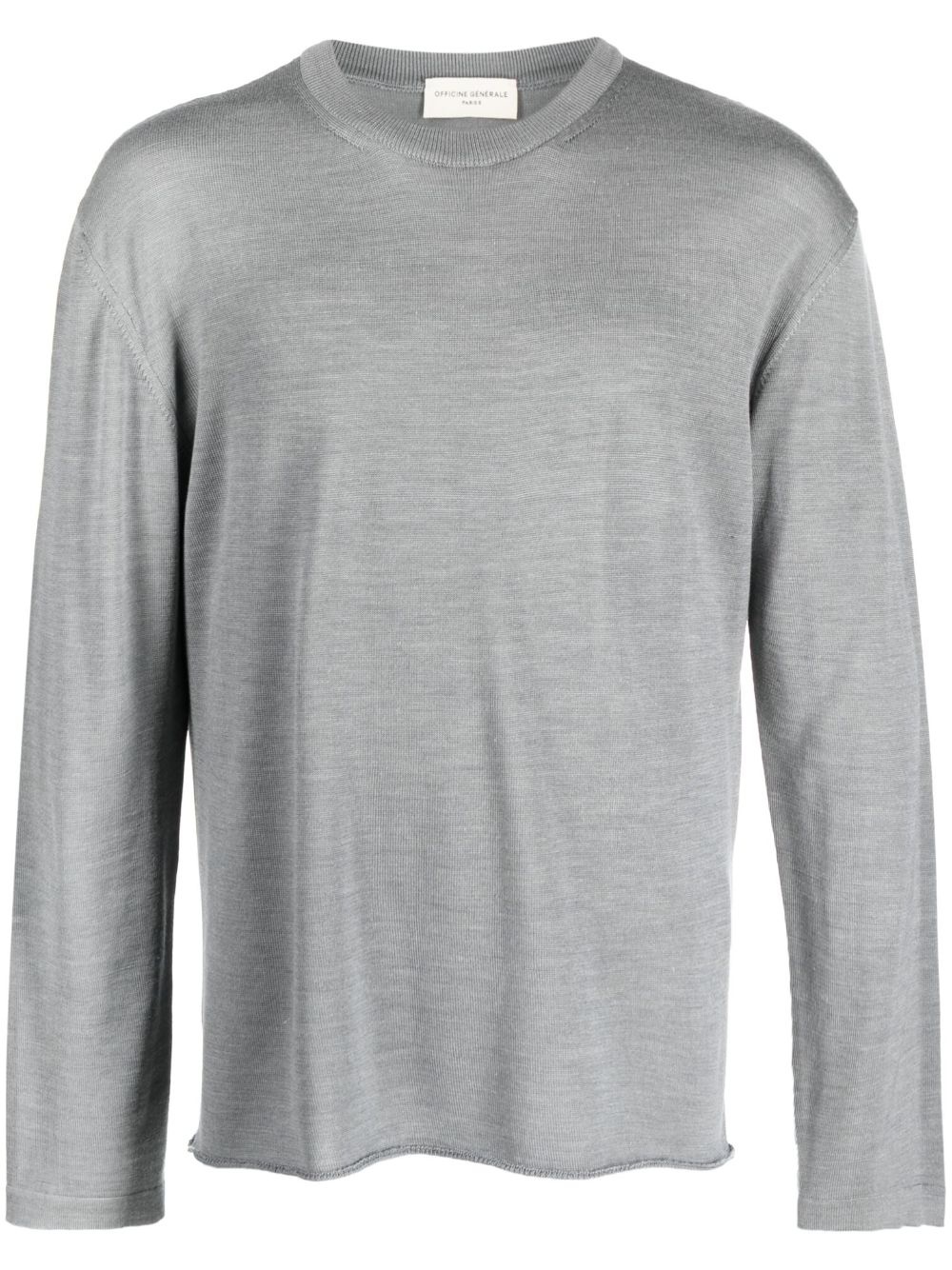 long-sleeve knitted jumper Highlights - Grey - Merino wool-recycled cupro blend - Fine knit - Crew neck - Long sleeves - Straight hem Made in Italy Composition Recycled Cupro 50%, Merino 50% SIZE & FIT Model measurements Height 6 ft 2 in(1.87 m) Bust/Chest 36.22 in(92 cm) Hips 37 in(94 cm) Waist 27.95 in(71 cm) Measurement CHEST 49.6 in(126 cm) SLEEVE LENGTH 37.79 in(96 cm) Shoulder Width 23.62 in(60 cm) FittingInformation Designed to be unstructured, offering a loose fit throughout Made with a midweight knit, this piece offers some stretch This piece fits true to size – take your usual size Washing instructions Hand Wash