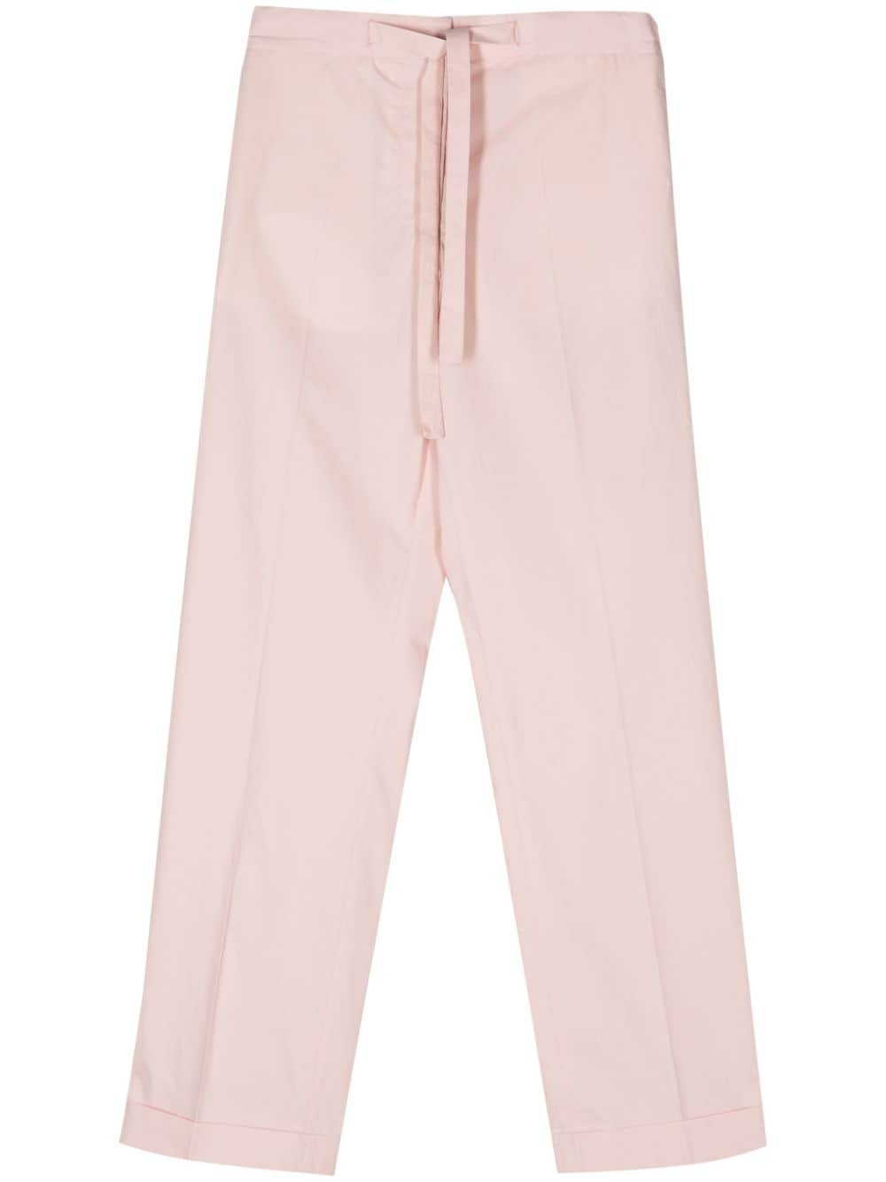 Miranda high-waist straight-leg trousers Highlights - Light pink - Organic cotton - Poplin texture - Pressed crease - High waist - Concealed front fastening - Drawstring waist - Two side slit pockets - Straight leg - Turn-up hem Imported Composition Lining: Cotton 50%, Polyester 50% Outer: Organic Cotton 100%