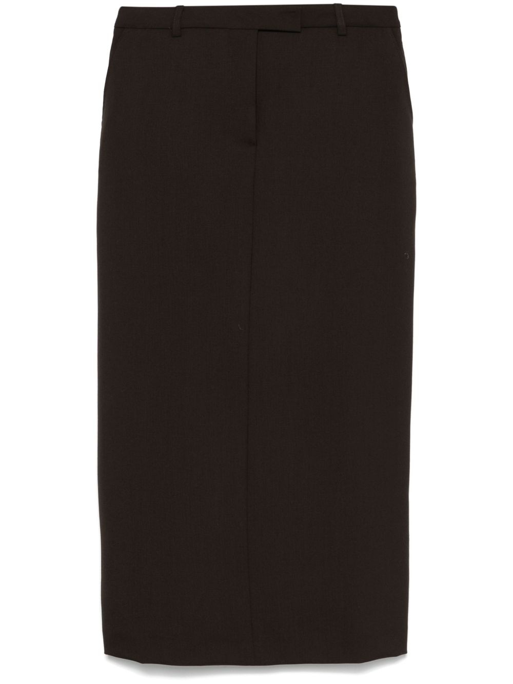 Oxana maxi skirt Highlights - Coffee brown - Virgin wool - Interlock twill weave - Concealed front button, hook and zip fastening - Low-rise - Belt loops - Two side slash pockets - Dart detailing - Two rear jetted pockets - Central rear vent - Full lining - Straight hem - Long length Imported Composition Lining: Viscose 100%, Cotton 100% Outer: Virgin Wool 100% SIZE & FIT Model measurements Height 5 ft 11 in(1.8 m) Bust/Chest 33.07 in(84 cm) Hips 37.4 in(95 cm) Waist 25.19 in(64 cm) FittingInformation This midi-length skirt is intended to be worn low on the hips The vented hem offers movement at the rear Made from a midweight non-stretch fabric Washing instructions Do Not Wash/Do Not Dry Clean