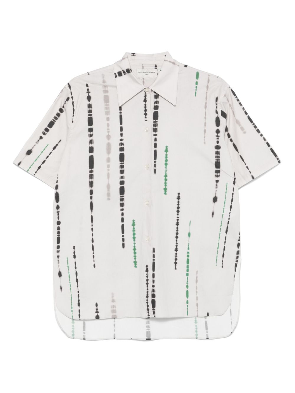 printed shirt Highlights - Light grey - Front button fastening - Pointed flat collar - Short sleeves - Curved hem Imported Composition Cotton 97%, Elastane 3% Washing instructions Machine Wash