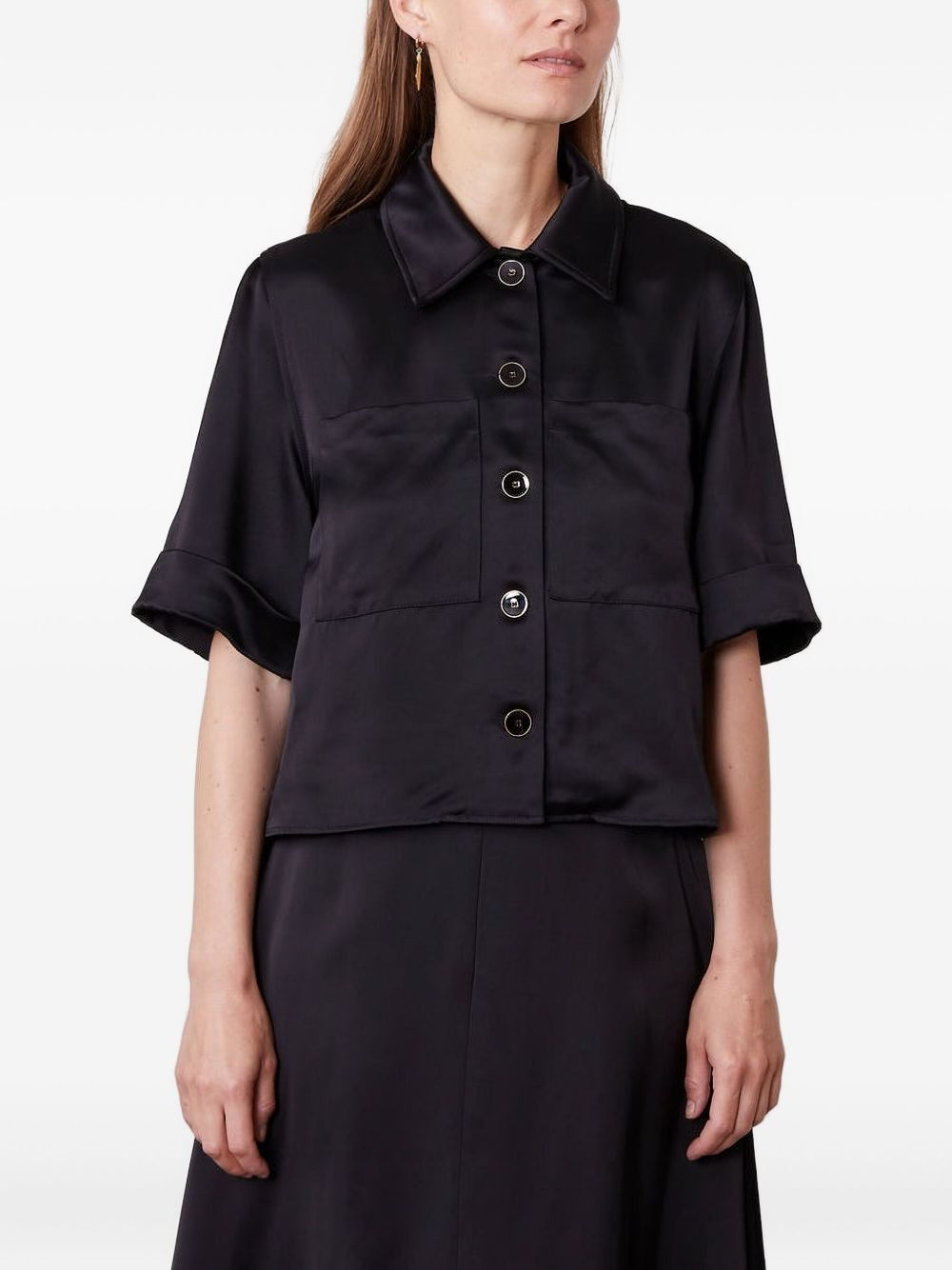 short sleeve shirt Highlights - Black - Short sleeves - Front button fastening - Chest patch pockets Imported Composition Viscose 100% Washing instructions Read Manufacturer Guidelines