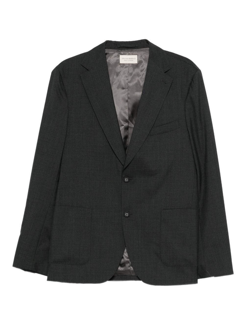 single-breasted blazer Highlights - Grey - Two-button fastening - Notched lapels - Front patch pockets - Long sleeves - Buttoned cuffs Imported Composition Fabric 100% Washing instructions Read Manufacturer Guidelines