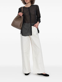 striped shirt Highlights - Black - Front button fastening - Unlined - Crew neck - Long sleeves Imported Composition Polyester 100%
