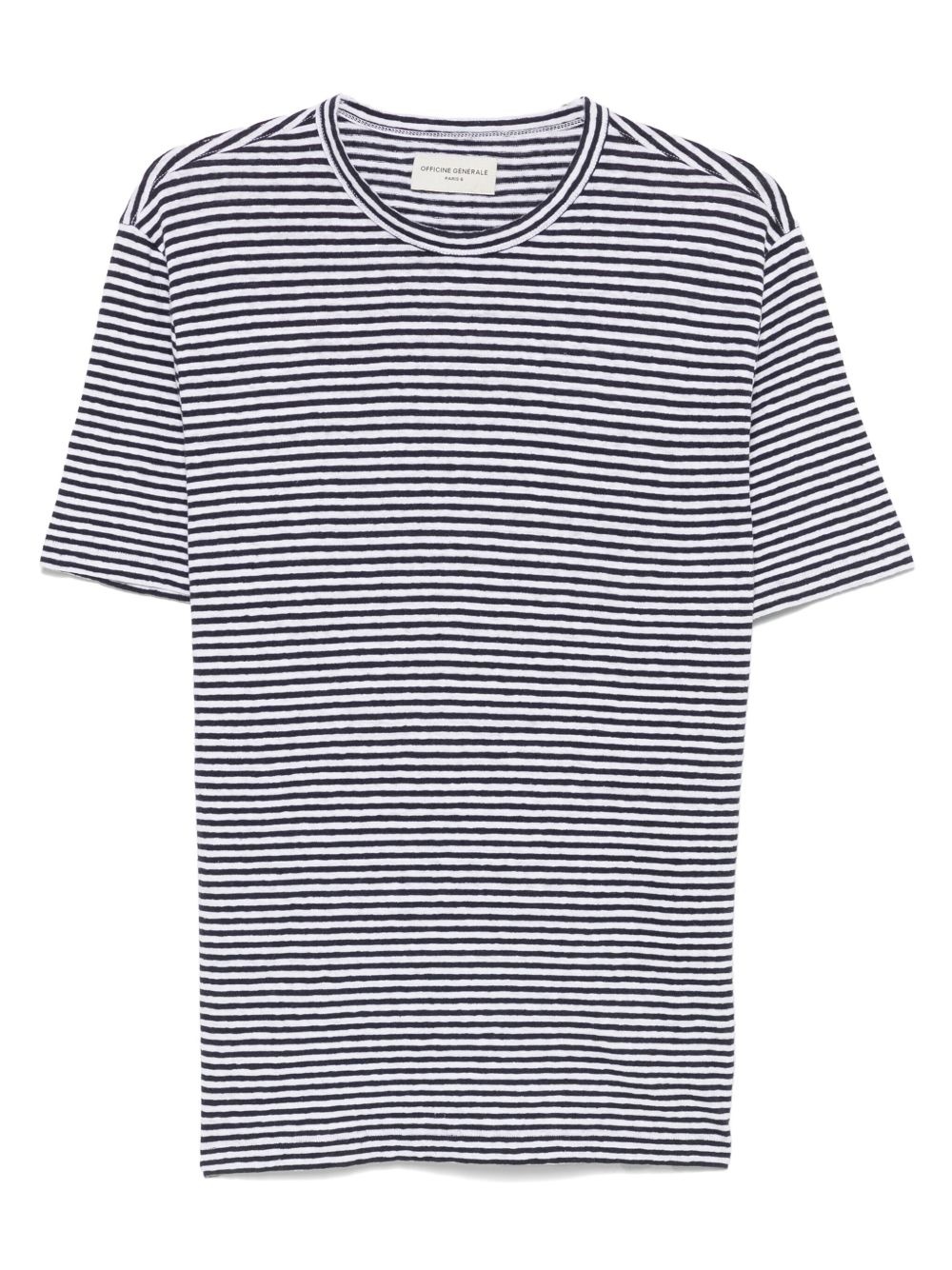 striped T-shirt Highlights - Navy blue - Crew neck - Short sleeves Imported Composition Linen/Flax 50%, Cotton 50%