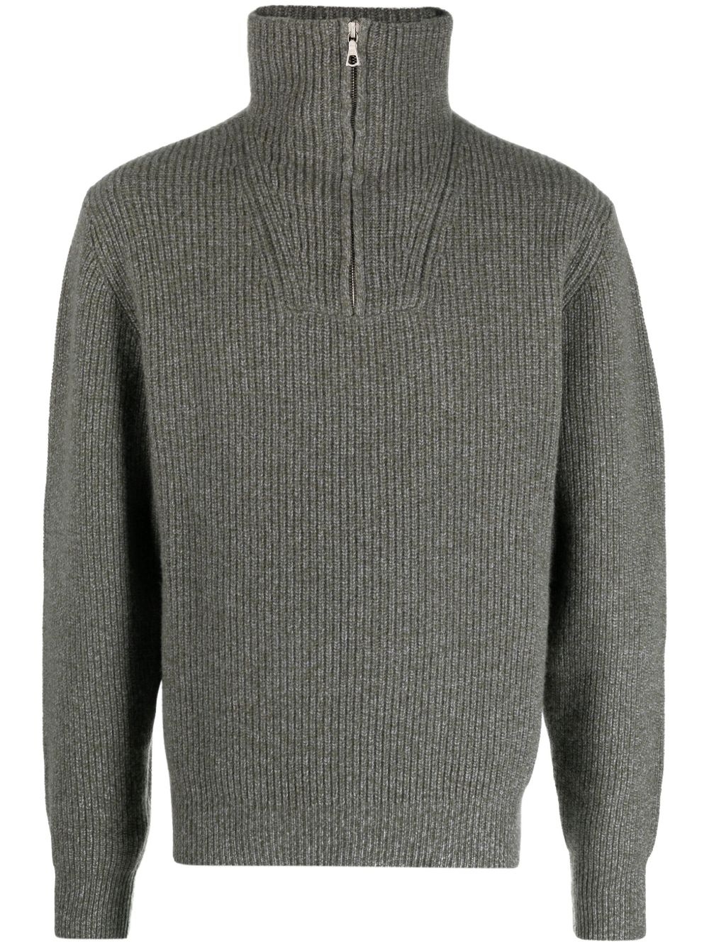 Tarek mock-neck jumper Highlights - Moss green - Wool-cashmere blend - Ribbed trim - Mock neck - Short front zip fastening - Long sleeves - Straight hem Made in Italy Composition Wool 90%, Cashmere 10% SIZE & FIT Model measurements Height 6 ft 2 in(1.87 m) Bust/Chest 38.18 in(97 cm) Hips 36.61 in(93 cm) Waist 29.13 in(74 cm) FittingInformation Designed for a relaxed fit, this piece allows for comfort and movement when worn The ribbed hem offers a close, comfortable fit Made with a midweight knit, this piece offers some stretch This piece fits true to size – take your usual size