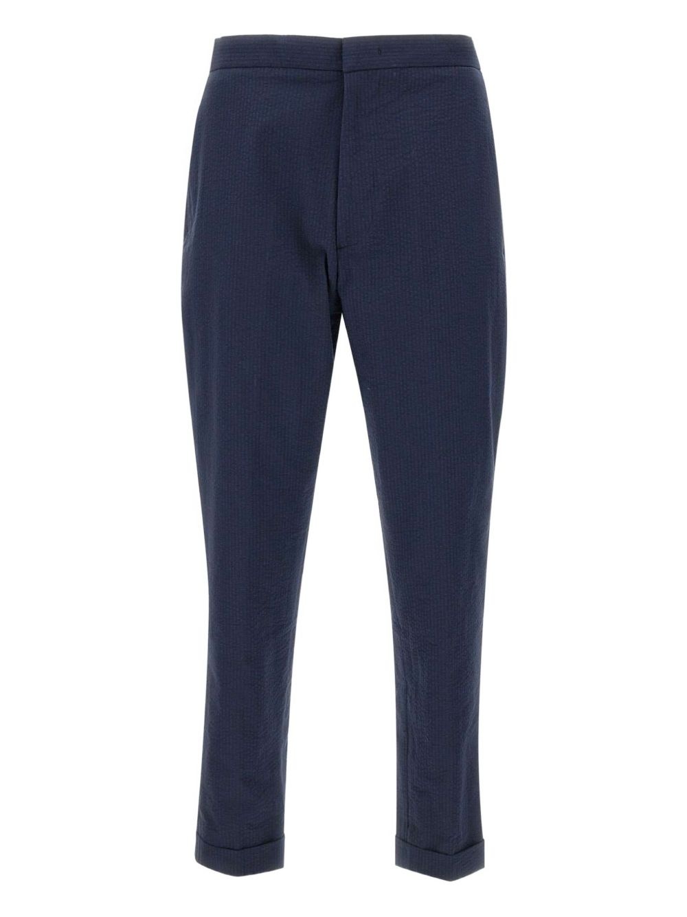 wool trousers Highlights - Navy blue - Concealed front fastening - Two side slit pockets - Two rear button-fastening jetted pockets - Tapered leg Imported Composition Wool 100%