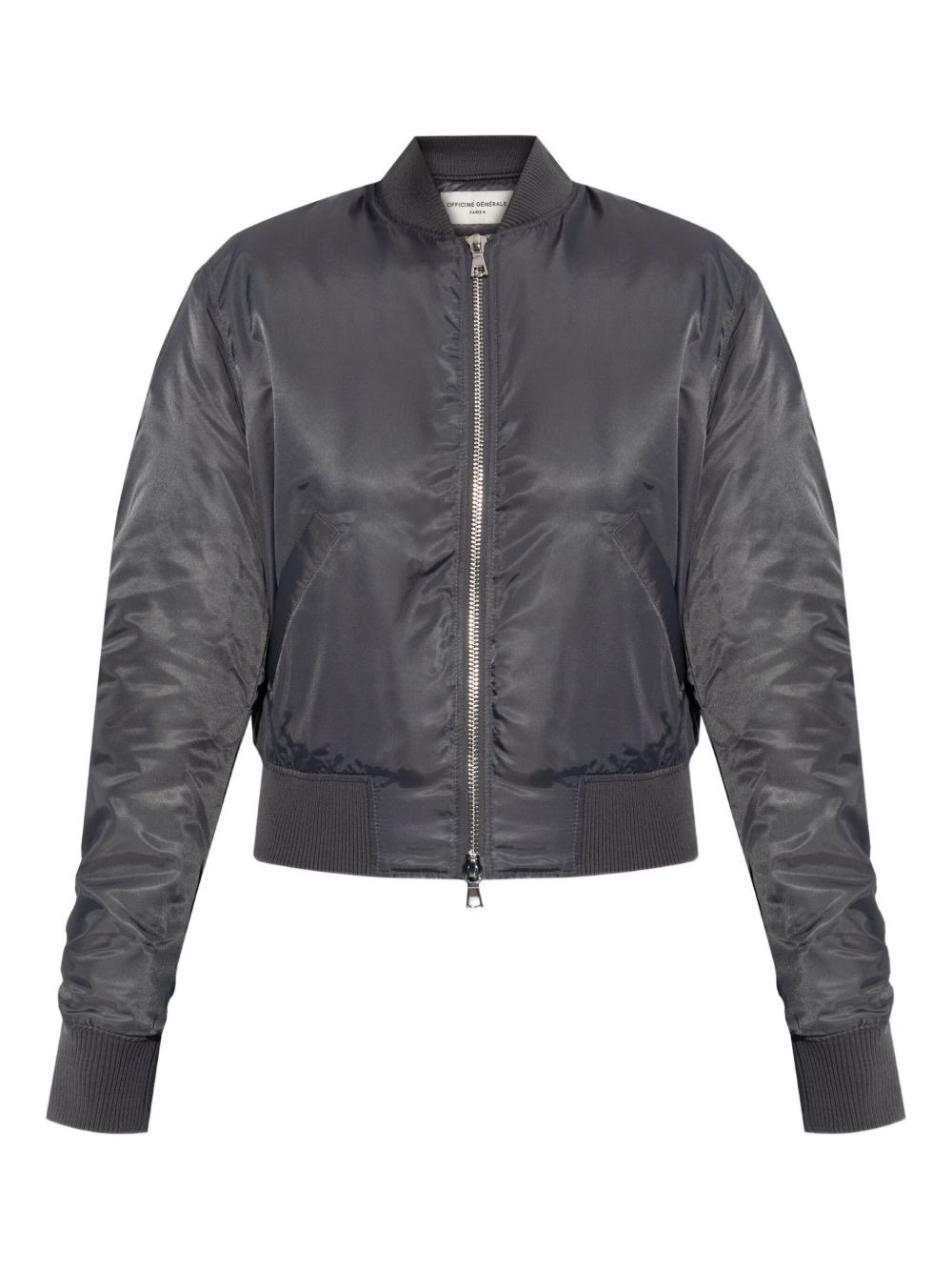 zip-up bomber jacket Highlights - Charcoal grey - Ribbed hem - Zip fastening - Long sleeves - Ribbed cuffs - Cropped hem Imported Composition Nylon 100% Washing instructions Read Manufacturer Guidelines