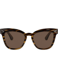 Marianela square sunglasses Tortoiseshell brown Marianela square sunglasses from Oliver Peoples featuring dark tinted lenses, square frames, straight arms with curved tips and a tortoiseshell effect. This item comes with a protective case. Made in United States Composition Acetate 100% SIZE & FIT Measurement Bridge Width 0.78 in(2 cm) Lens Diameter 2.12 in(5.4 cm) Arm Length 5.7 in(14.5 cm)