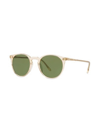O'Malley round-frame sunglasses Transparent beige O'Malley round-frame sunglasses from Oliver Peoples featuring round frames, tinted lenses and straight arms with angled tips. This item comes with a protective case. Made in Italy Composition Outer: Acetate 100% SIZE & FIT Measurement Bridge Width 0.86 in(2.2 cm) Lens Diameter 1.88 in(4.8 cm) Arm Length 5.7 in(14.5 cm)