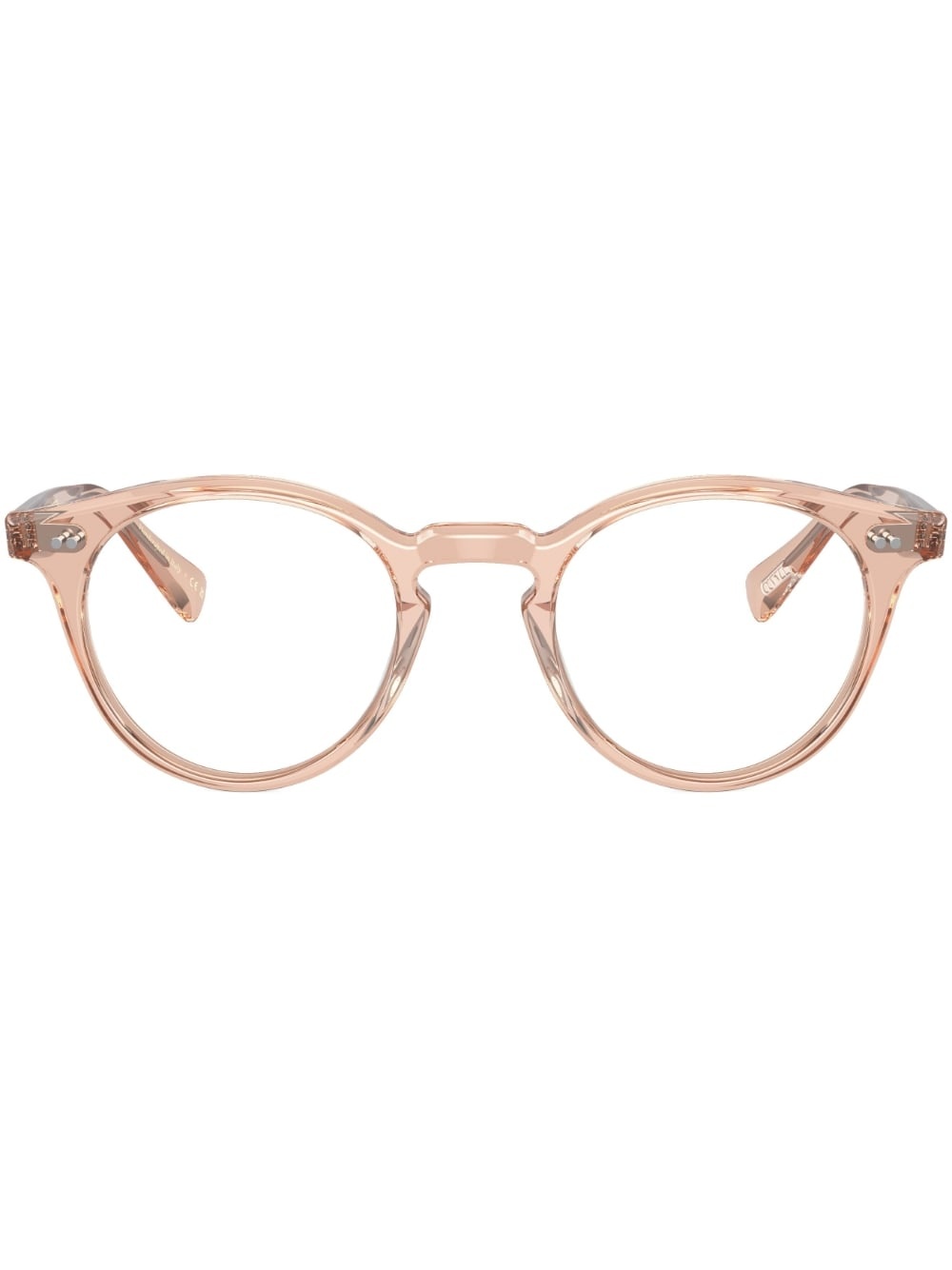 round-frame glasses light pink acetate clear lenses round frame straight arms curved tips These glasses come with a protective case. All glasses from FARFETCH are sold as non-prescription frames. Made in United States Composition Acetate 100%