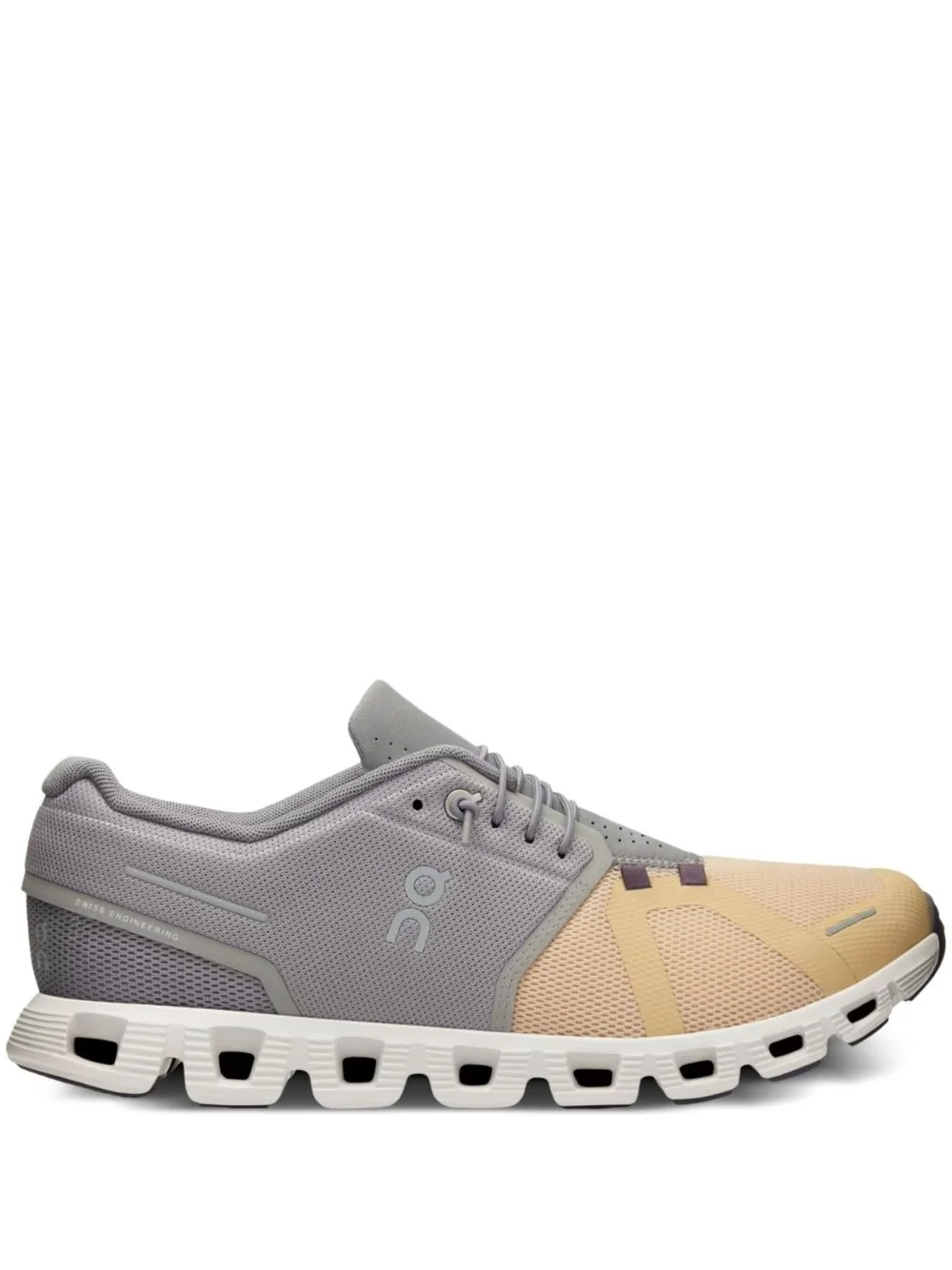 On Cloud 5 "Fog Savannah" Highlights - Light beige/cool grey - Mesh design - Panelled design - Front lace-up fastening - Logo print to the side - Logo-print tongue - Round toe - Signature cloudtec® cushioning - Rubber sole Imported Composition Lining: Fabric 100% Sole: Rubber 100% Outer: Fabric 56%, Recycled Fabric 44%