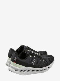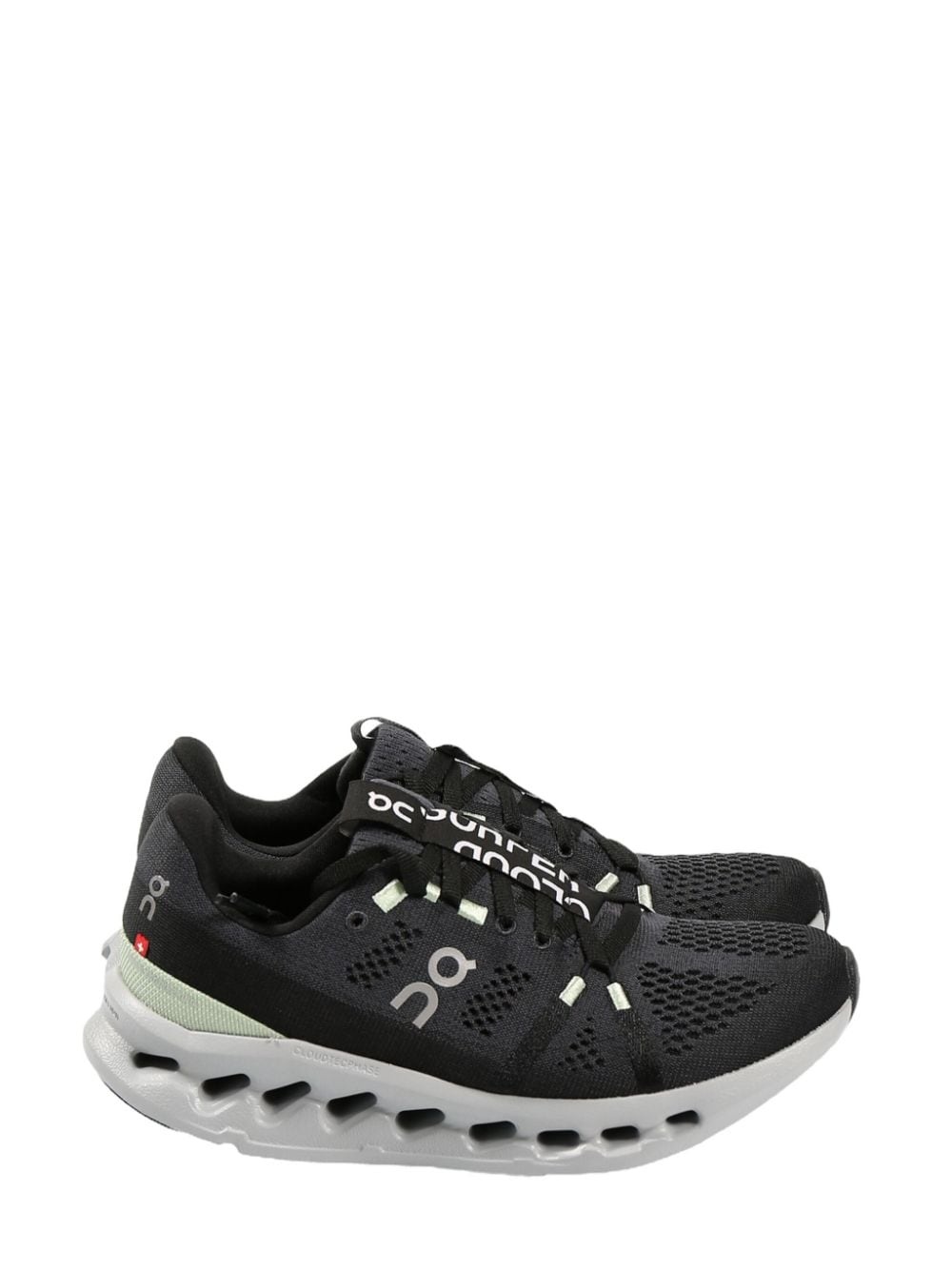 On Cloud Surfer trainers Highlights - Black - Front lace-up fastening - Branded heel counter - Perforated detailing - Logo print to the side - Logo-print strap - Round toe - Chunky rubber sole - Branded insole Imported Composition Lining: Fabric 100% Outer: Polyester 70%, Recycled Polyester 30% Sole: Rubber 100%