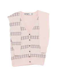 Pink Jacquard Sleeve Layered Cardigan Vest