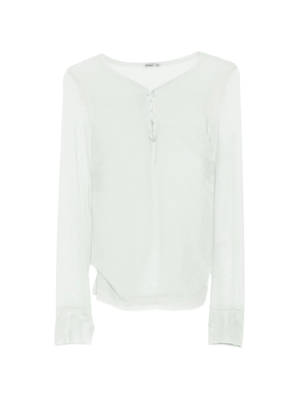 mesh hooked T-shirt Highlights - Mint green - Front hook fastening - Long sleeves - Henley neck Imported Composition Nylon 85%, Polyurethane 15% Washing instructions Hand Wash