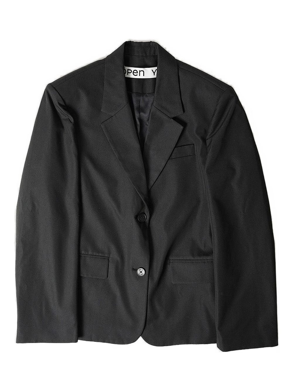 single-breasted blazer Highlights - Black - Padded shoulders - Single-breasted button fastening - Front flap pockets - Chest welt pocket Imported Composition Cotton 71%, Polyester 29% Washing instructions Read Manufacturer Guidelines