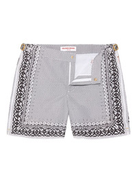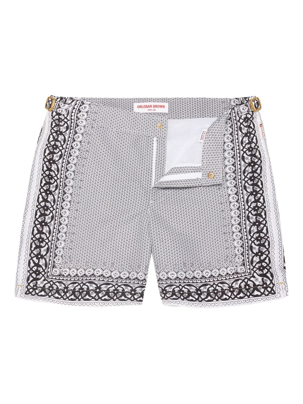 Bull Dog patterned swim shorts Highlights - White - Black patterned border - Geometric print - Central repeating pattern - Gold-buckle fastening - Side-adjustable strapsbe mindful to try on swimwear over your own garments. Imported Composition Recycled Polyester 100% Washing instructions Read Manufacturer Guidelines