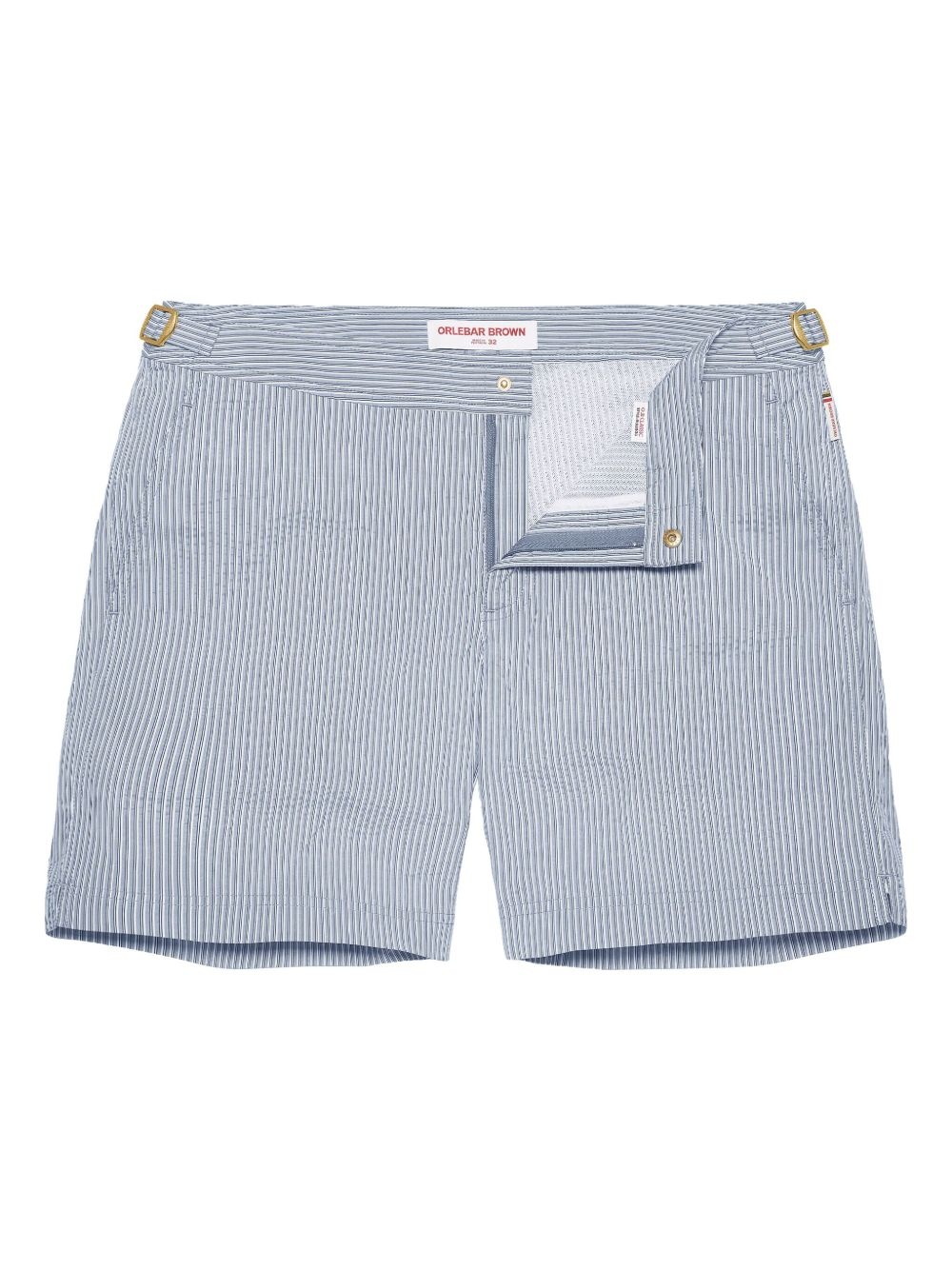 Bulldog swim shorts Highlights - Blue - Two side slit pockets - Vertical stripe pattern - Rear zip-fastening pocket - Be mindful to try on swimwear over your own garments. Imported Composition Polyester 73%, Elastomultiester 27%
