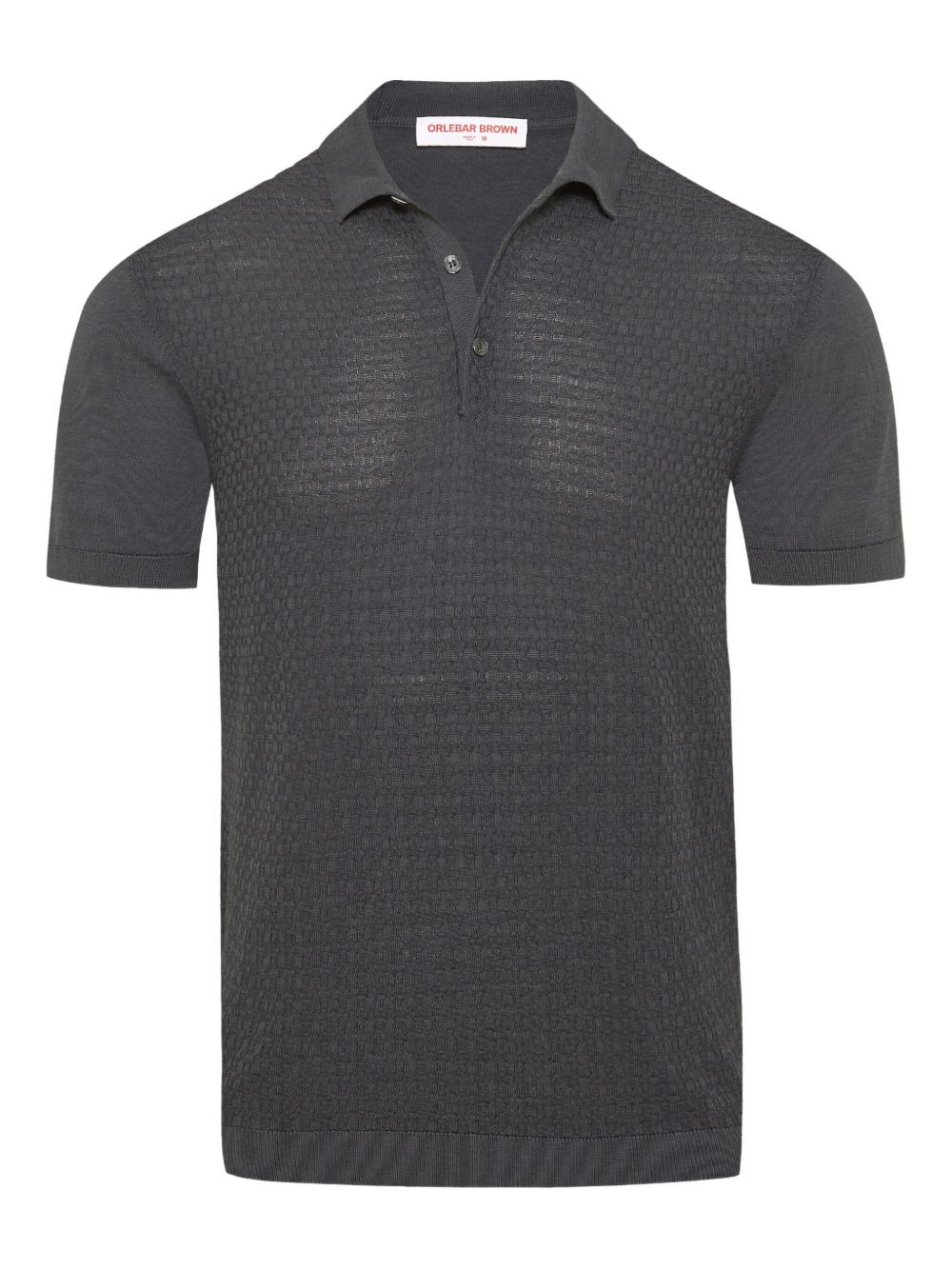 Burnham textured silk-cotton polo shirt Highlights - Charcoal grey - Silk cotton blend - Textured weave - Short sleeves - Two button placket - Small flag emblem Made in Italy Composition Mulberry Silk 62%, Organic Cotton 38%