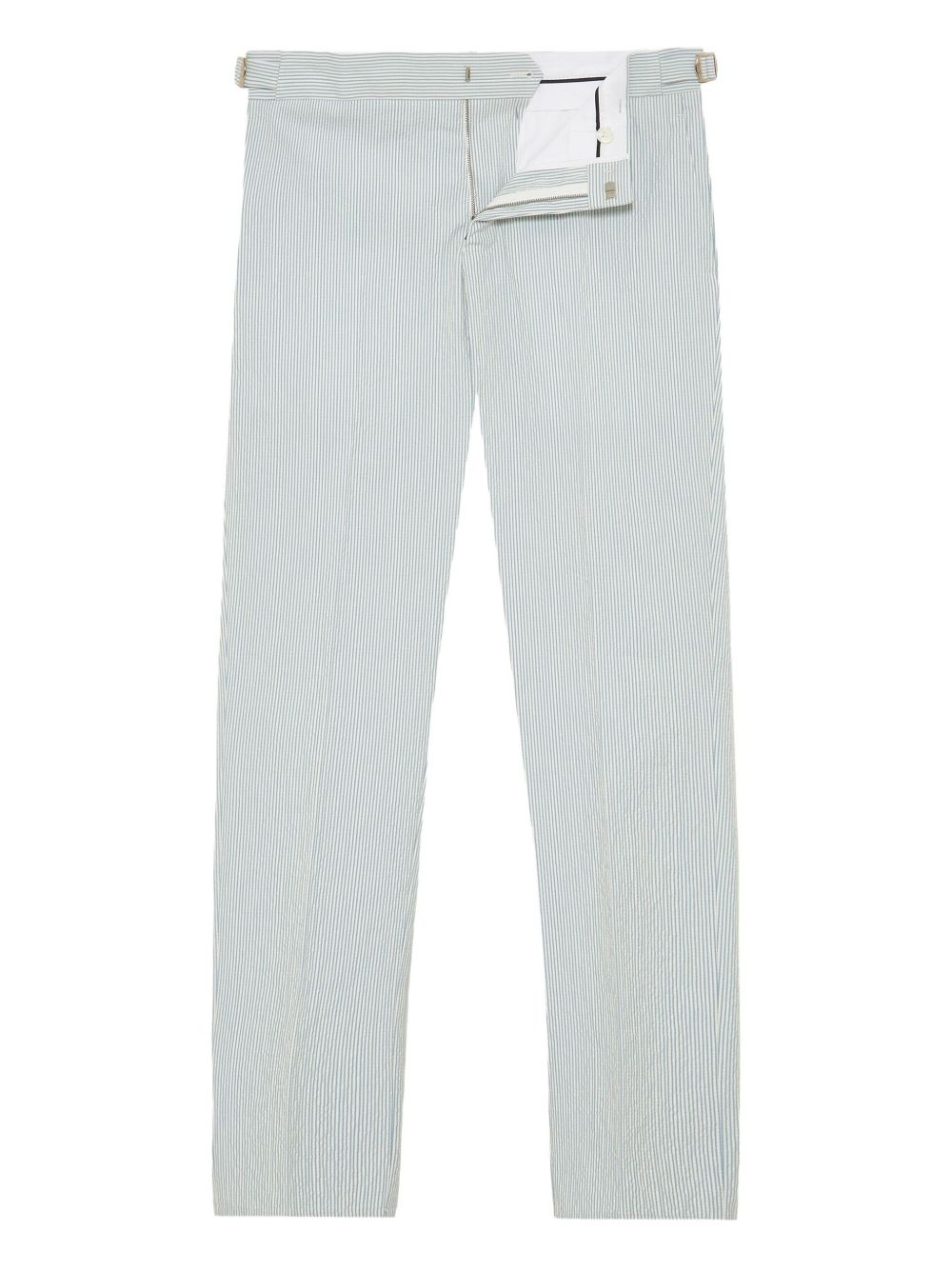 Griffon Seersucker Trousers Wave Blue And White Sand